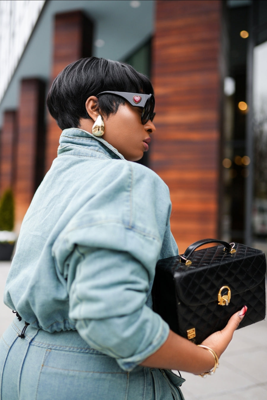 Discover timeless style with our denim pant set, a perfect blend of comfort and fashion. This set features a trendy crop blouse with a drawstring waist that effortlessly combines sophistication with a touch of casual chic. The drawstring detail not only adds a fashionable element but also allows you to customize the fit to your liking.