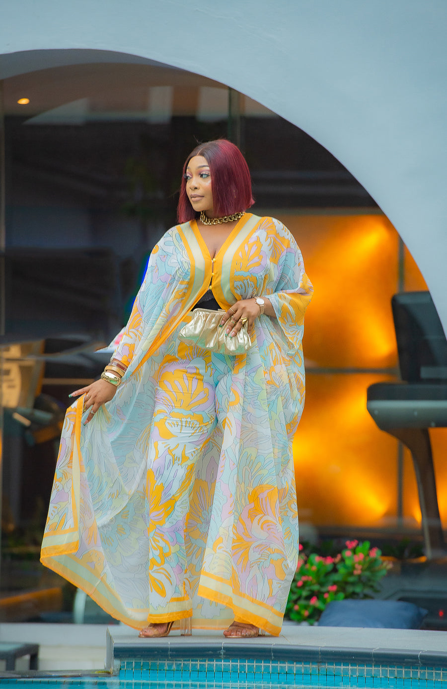 Rich Aunty Blossom- 2pc Floral Kimono Top/Long Pant SET (NEW)