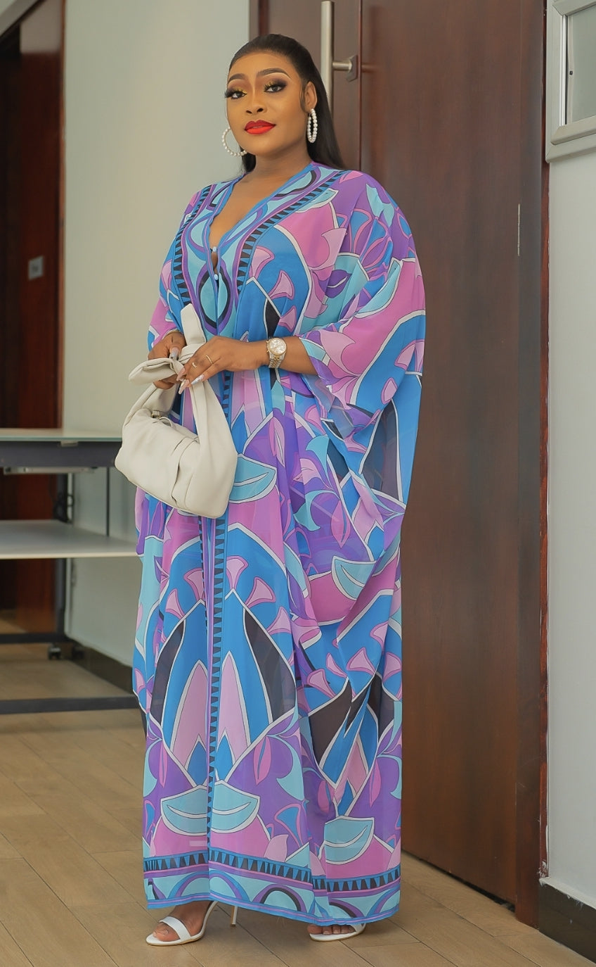 Rich CHIC Vibes- 2pc Blue/Purple Multi KIMONO TOP/SHORTS SET (NEW)