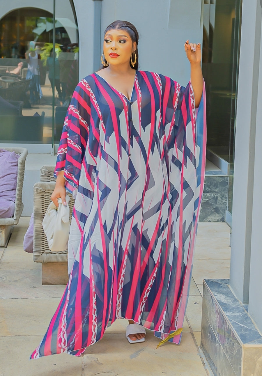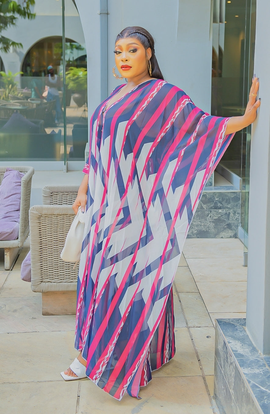 Rich Queen Colorblock- 2pc Geometric Design Kimono Top/Pant SET (NEW)