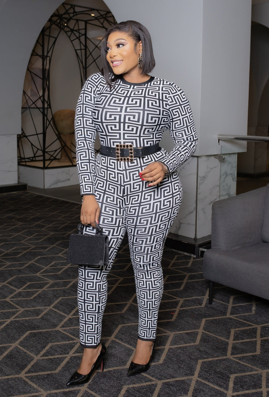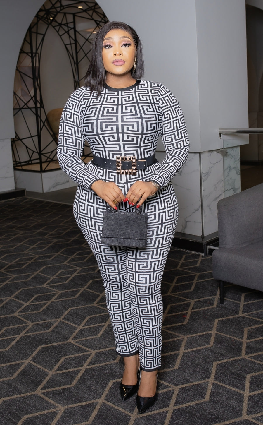 Look like a work of art and super stunning in this beautiful Bodycon JUMPSUIT. Long sleeve, cinched waistline, curve hugging and an amazing fit. A MUST HAVE!