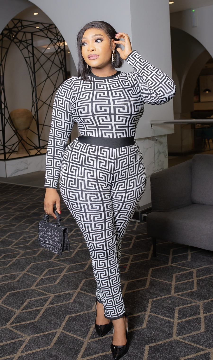 Color- BLACK/WHITE geometric design only