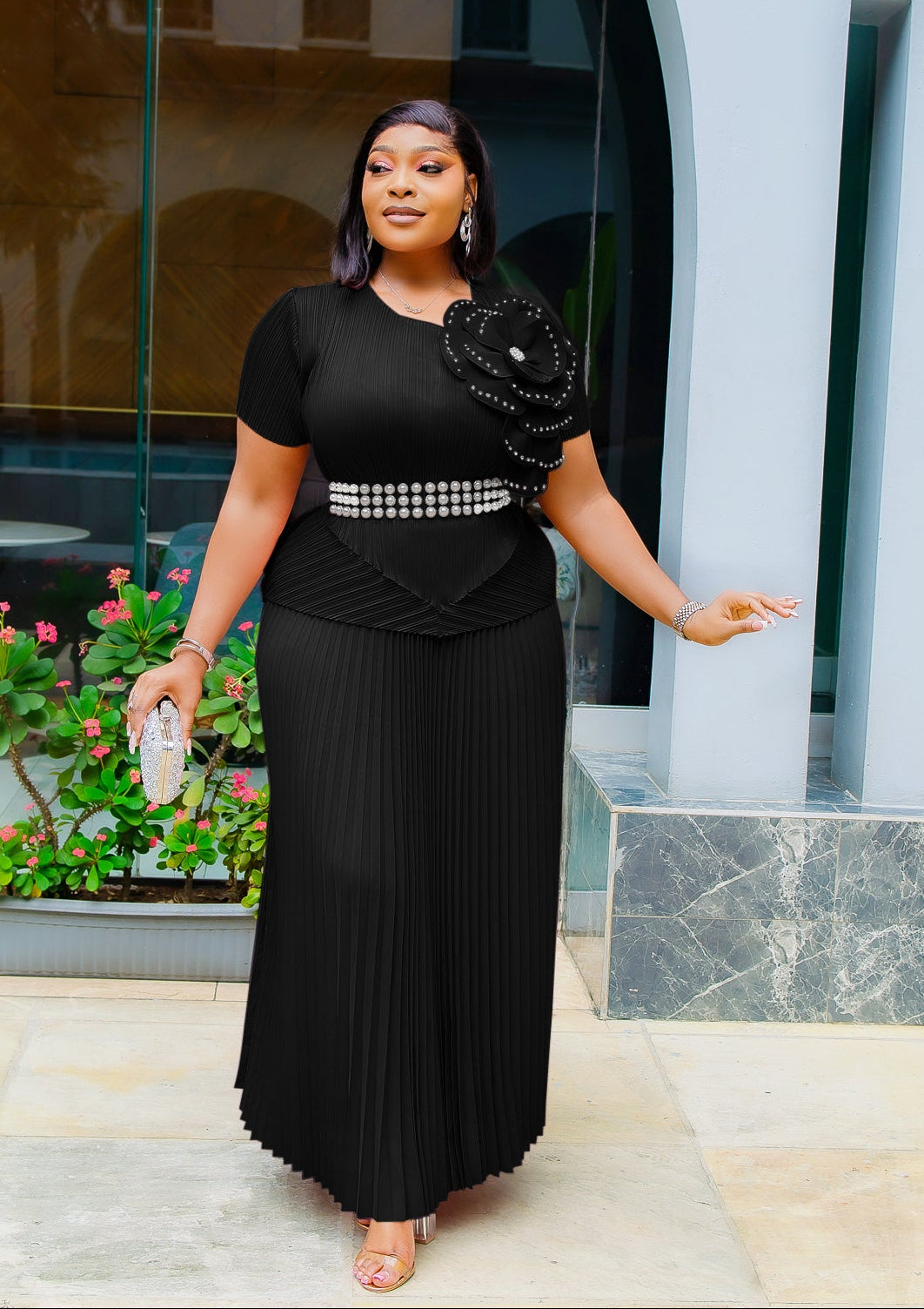 This beautiful elegant MIDI PLEATED LONG SKIRT SET will make heads turn wherever you make an entrance!!!