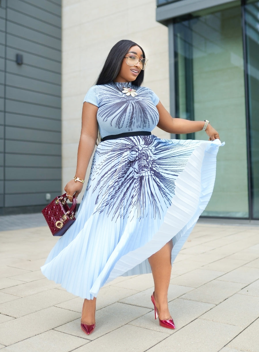 This beautiful elegant LONG/MIDI PLEATED SKIRT SET will make heads turn wherever you make an entrance!!!