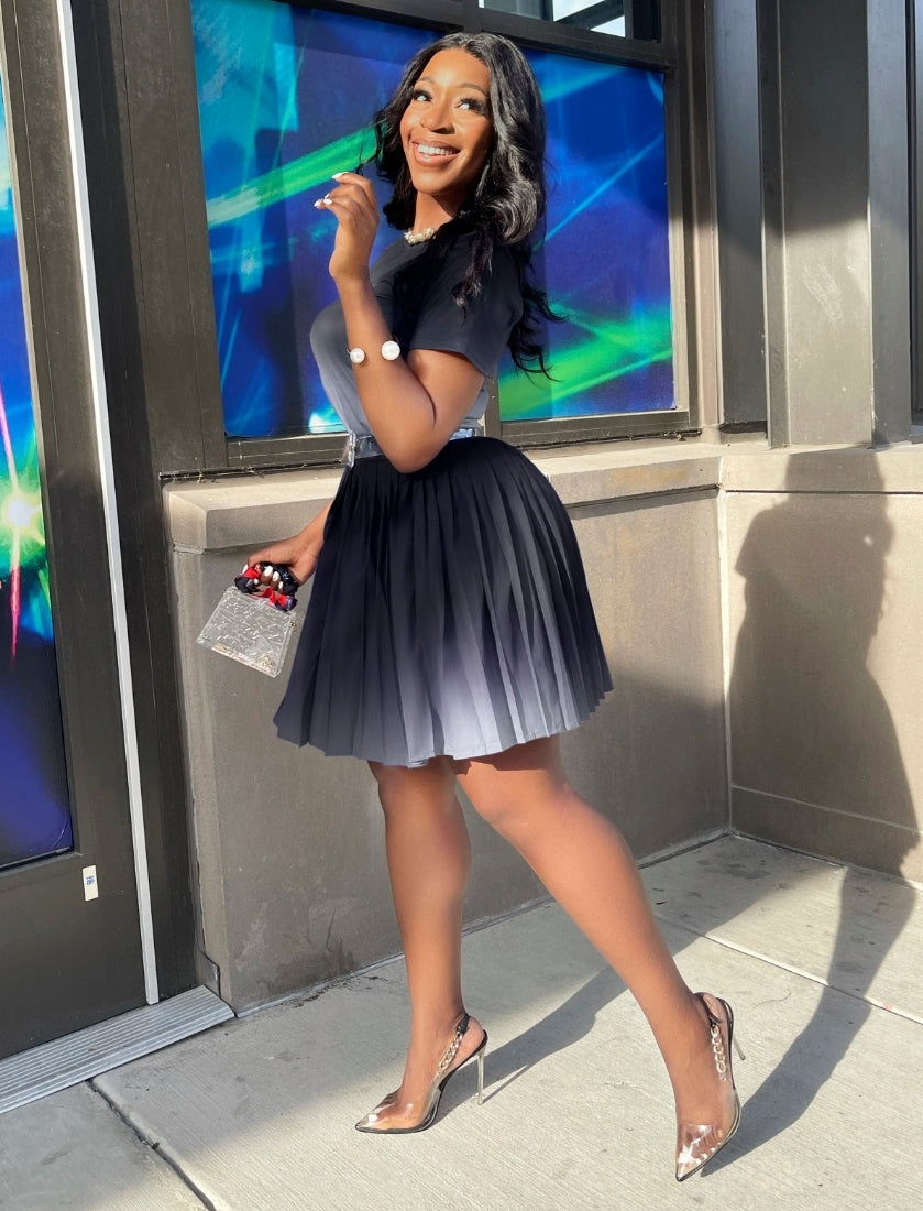 City Diva- Ombre T-shirt and SKATER Pleated Skirt SET (NEW)