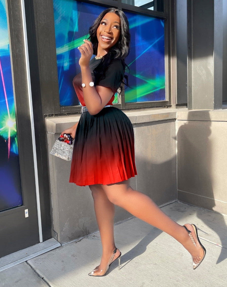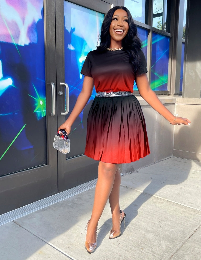 This Ombre color Two Piece Short Sleeve TSHIRT and Pleated Mini SKATER Skirt is a SHOW STOPPER SET !!!