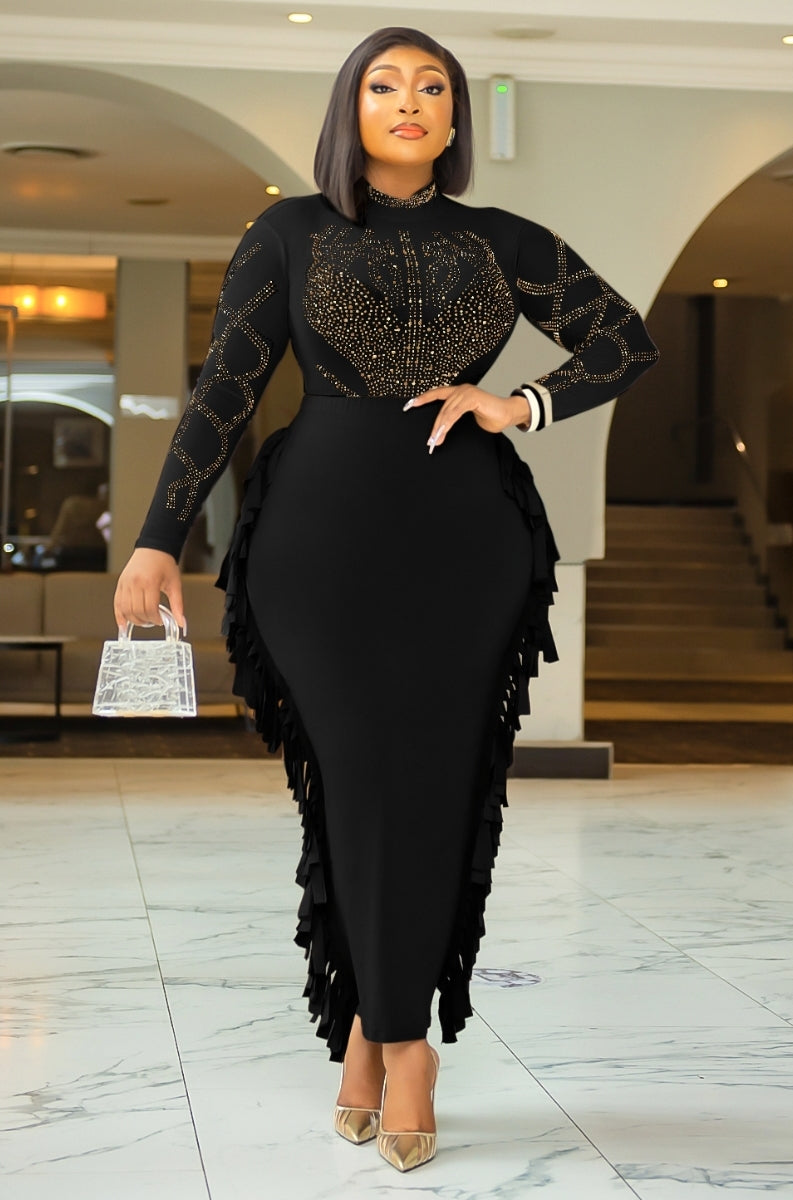 Solid fabrics are totally in right now and this fringed LONG skirt is at the top of our hit list. Featuring a bodycon pencil style with SIDE tassel fringes design with high waistline. Style this skirt with multicolored or solid color tops and heels for a look that is perfect for a daytime or night party. HEAD TURNER