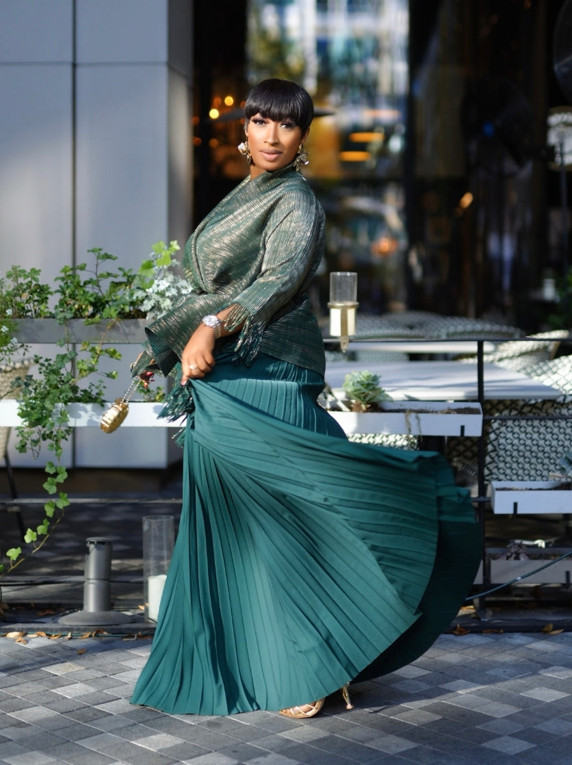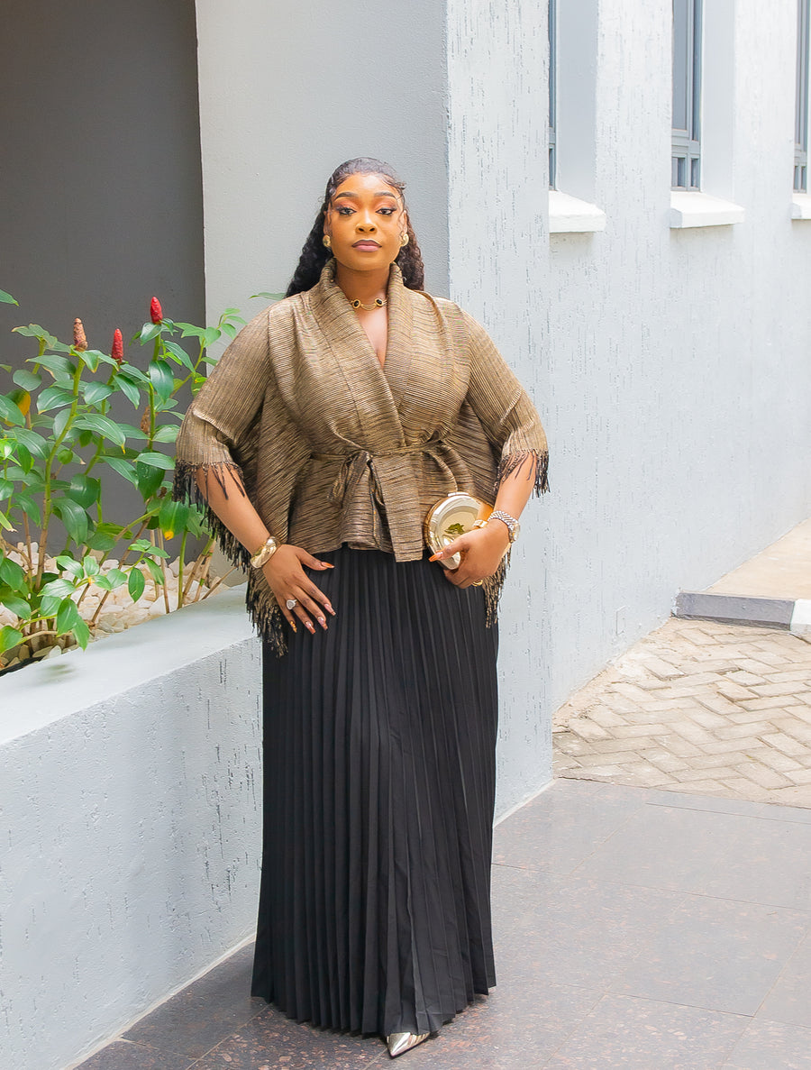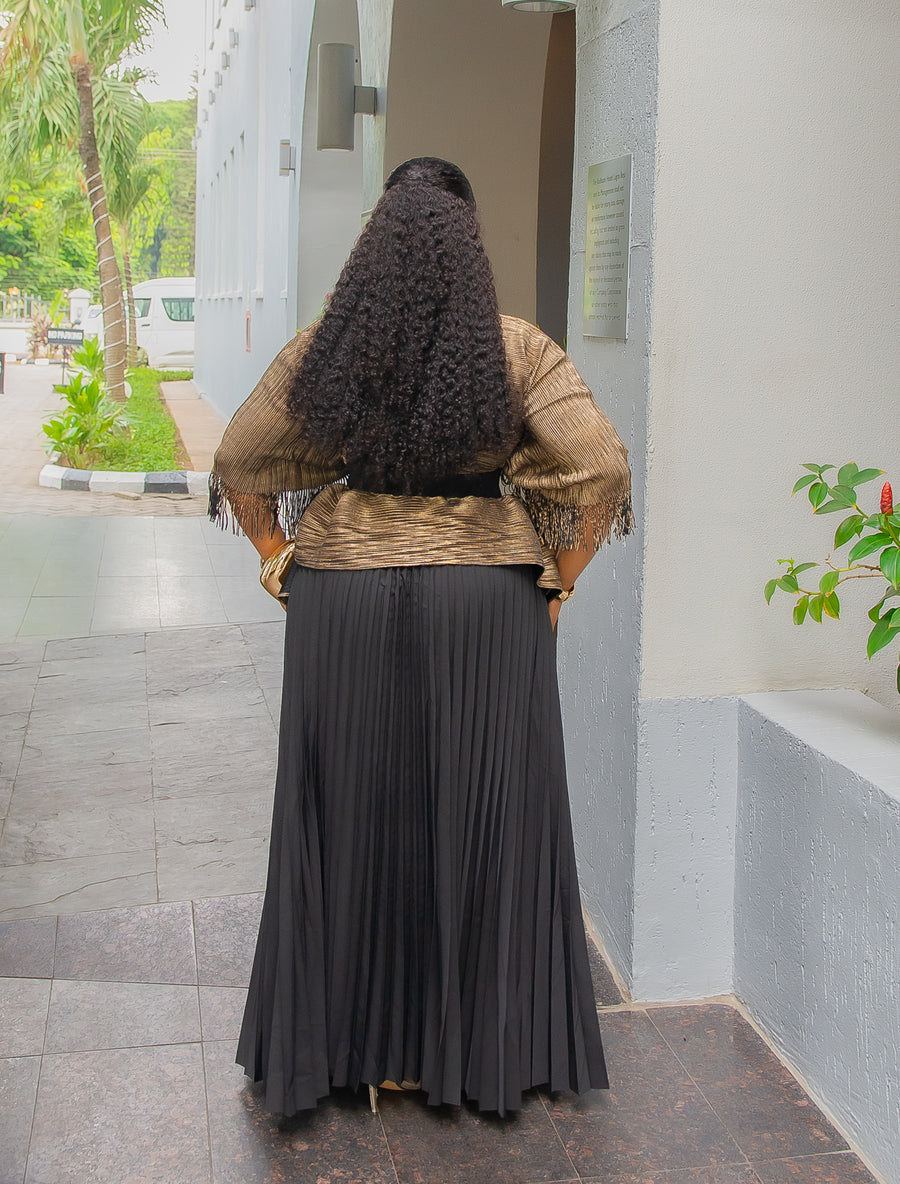 This beautiful elegant LONG/FLOOR LENGTH PLEATED SKIRT SET will make heads turn wherever you make an entrance!!!