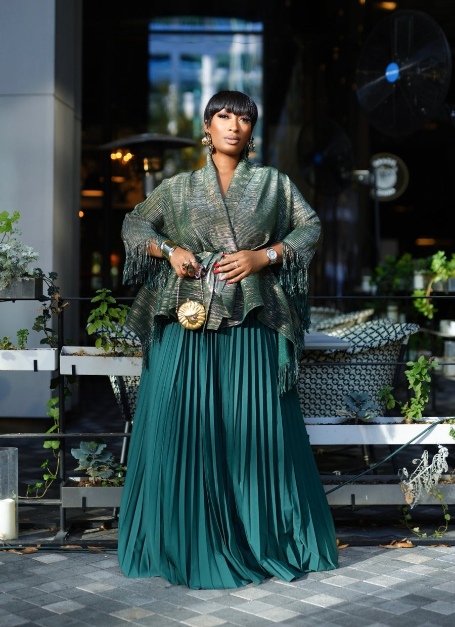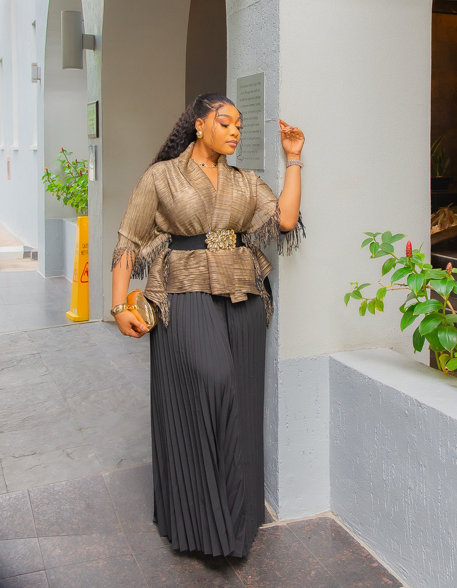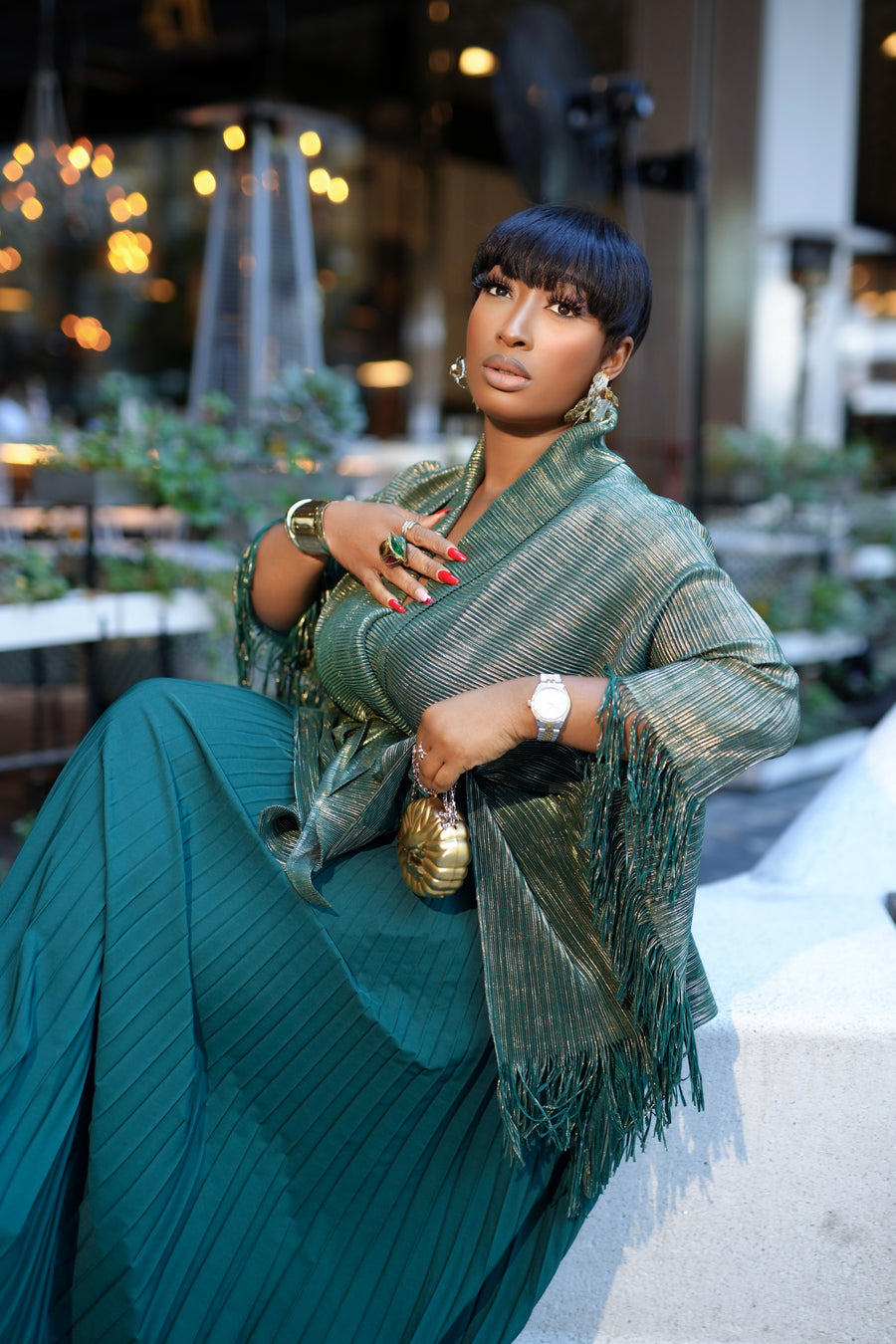 This beautiful elegant LONG/FLOOR LENGTH PLEATED SKIRT SET will make heads turn wherever you make an entrance!!!