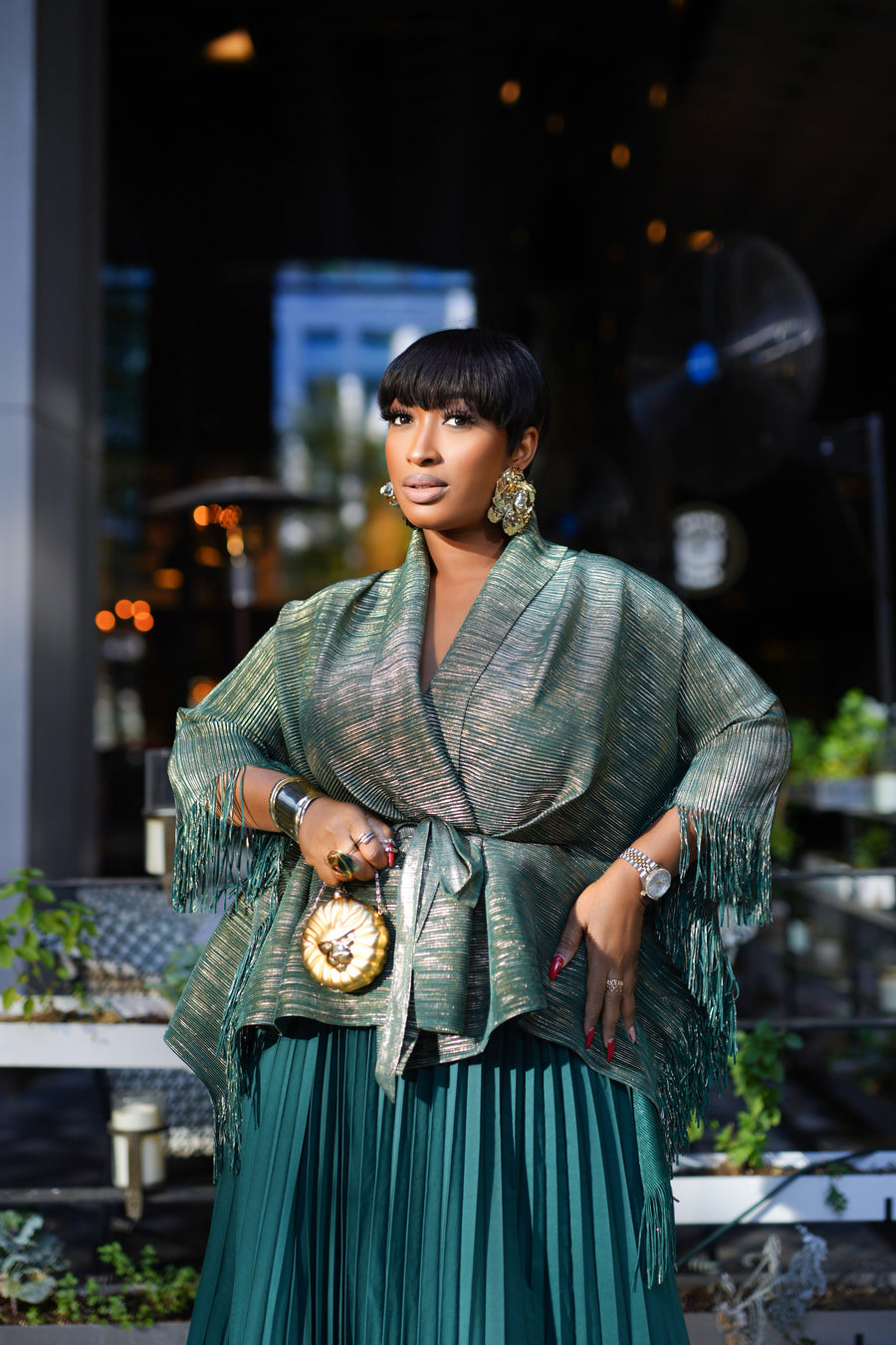 Elevate your look by accessorizing with bold jewelry, clutch and statement heels!