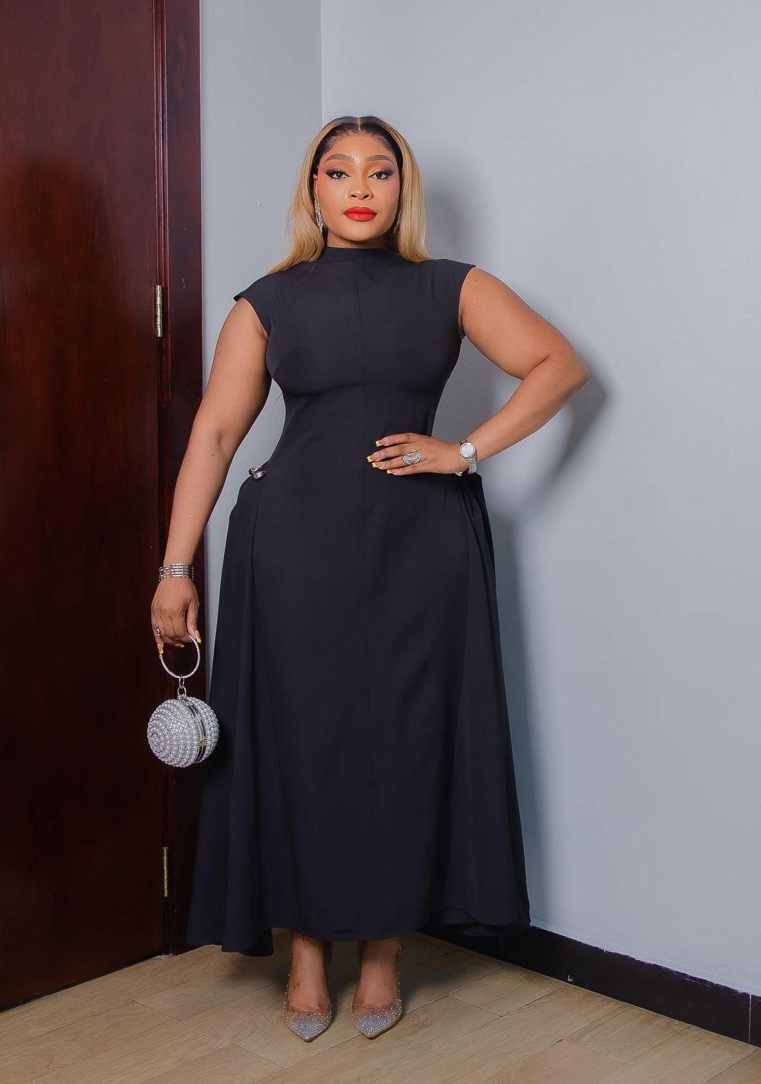 Perfect for weddings, cocktail evenings, or upscale dinners, this dress blends timeless elegance with contemporary edge. Pair with closed toe or strappy heels and a clutch for a polished finish.