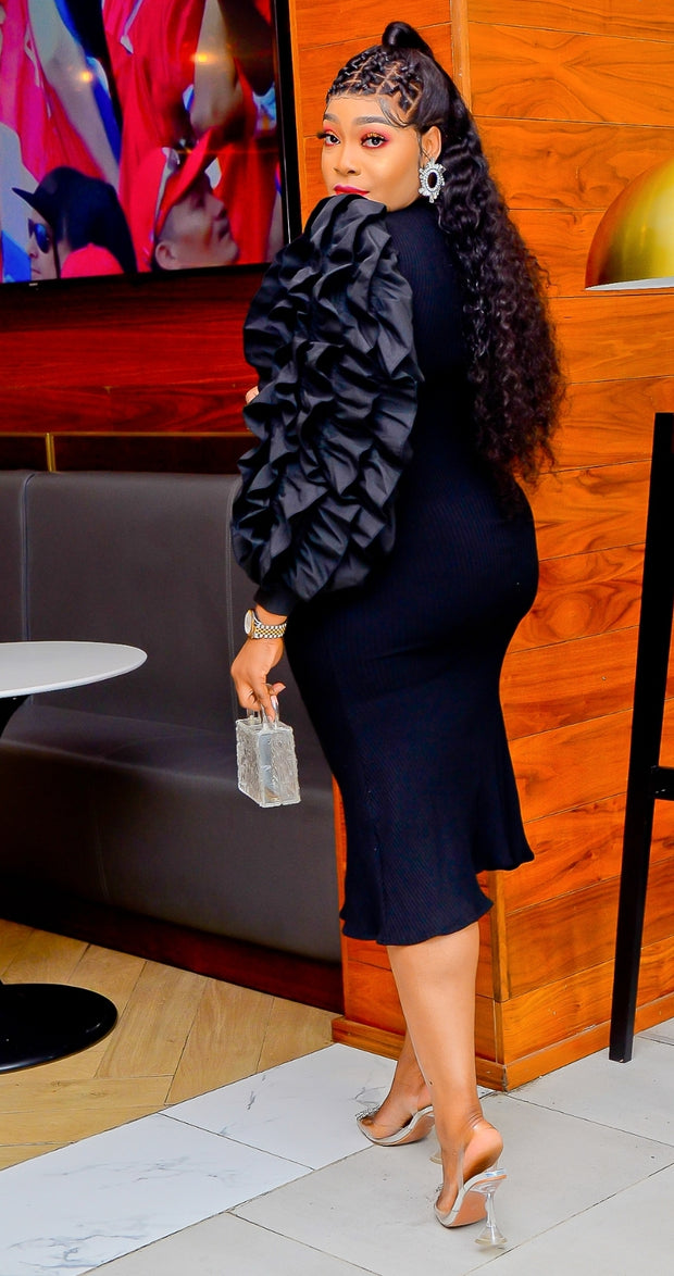 Stand out at your next outing with this ribbed sweater fishtail dress, a stunning MIDI bodycon design with puff ruffle sleeves galore that will make heads turn. Complete the look with pumps or boots!... Spice up the look with some bold jewelry and waist belt! Guaranteed to make an entrance.
